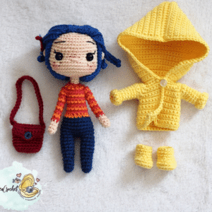Price range: 7,00 € through 11,00 €Get ready for Halloween with this exclusive Coraline-inspired 3-in-1 crochet doll pattern! This bundle allows you to create a charming Coraline doll with three interchangeable outfits to celebrate the spooky season with handmade magic.