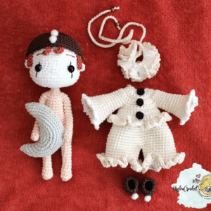 4,50 €Create Little Pierrot, a poetic and nostalgic crochet doll with a removable jumpsuit, hat, and shoes. This pattern also includes a dreamy crescent moon. Available in English and French. Intermediate level.