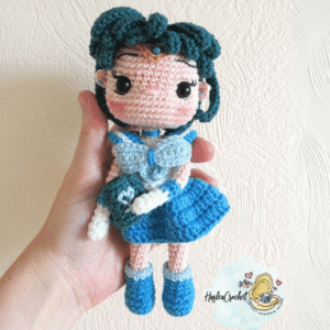 4,50 €The Sailor Mercury & Her Book crochet pattern lets you create the intelligent and graceful guardian of water, symbolizing wisdom and strategy. With a removable outfit, articulation options, and her signature book, this set perfectly captures her brilliance and elegance.