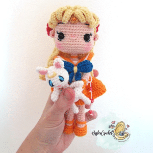 4,50 €The Sailor Venus & Artemis crochet pattern allows you to create the graceful guardian of love and light, along with her faithful white cat, Artemis. With a removable outfit and articulation options, this pattern brings this iconic duo to life with all their elegance and charm.