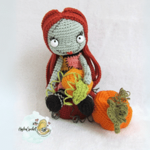 Price range: 4,50 € through 9,00 €The Sally, Her Cat & Pumpkins crochet pattern bundle brings a touch of Halloween magic to your collection. Inspired by a famous spooky love story, this set includes Sally with her removable outfit, a loyal black cat, and decorative pumpkins for a charmingly eerie display.