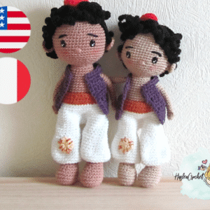 0,00 €Aladdin – Crochet Doll Pattern is a beginner-friendly, downloadable PDF tutorial to crochet your own 24 cm (9.4 in) Aladdin doll. The pattern is available in English and French and includes clear, step-by-step instructions, photos, and diagrams. It’s a perfect project for those new to amigurumi or fans of fairytale characters.All rights reserved by @HasleaCrochet.