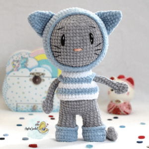 4,50 €Kitten is a cute, mischievous cat wearing red overalls and a striped sweater. This easy-to-follow amigurumi pattern includes clear instructions, photos, and removable clothing. With a finished size of 20 cm, it’s perfect for beginners.