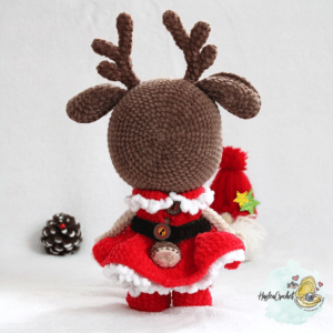 4,50 €Ruby is a festive reindeer doll, dressed in a charming holiday outfit with a red dress, fluffy white hem, golden-buckled belt, and tiny soft antlers . Her rosy cheeks and playful smile bring warmth to any holiday project. This beginner-friendly crochet pattern includes clear instructions, step-by-step photos, and helpful tips. With a finished size of approximately 23 cm, Ruby makes a perfect holiday decoration or a thoughtful handmade gift.