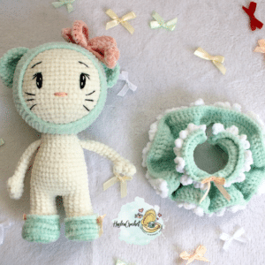 4,50 €Miku is a sweet little bunny, dressed in an adorable removable dress and accessories. A fan of music, she’s the best friend of Kitten and Teddy, sure to delight children. This easy-to-follow amigurumi pattern features clear instructions, step-by-step photos, and tips for a smooth crafting experience. With a finished size of approximately 20 cm, Miku is perfect for beginners.